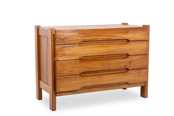 Cassettiera a 4 cassetti in olmo biondo naturale.