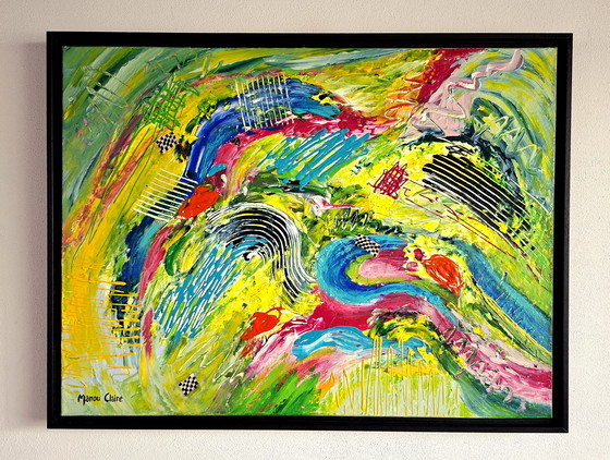 Scoprite la vibrante energia di "Speedway" di Manou Claire. Questo dipinto astratto esplode di colore e movimento, con un dinamico mix di giallo, blu, verde, turchese, arancione, ciclamino e nero. L'opera è perfetta per aggiungere un tocco di creatività e stile a qualsiasi ambiente. Realizzata su tela e incorniciata in legno, trasmette qualità e maestria artigianale. Aggiungete questo pezzo unico alla vostra collezione e fate risplendere i vostri interni. Pittura acrilica su tela con finitura opaca e cornice flottante in legno nero. Dimensioni: 60 x 80 cm. Cornice inclusa: 64 x 84 cm. Con certificato di autenticità e firma dell'artista.