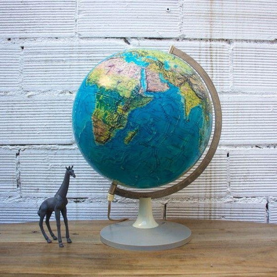 Mappamondo illuminato dell'anno 1974. Scala 1:41.849.600. Prodotto in Danimarca, il testo è in spagnolo.