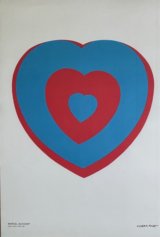Progetto del poster di Marcel Duchamp, Coeurs Volant (Detalj), Copyright Succession Marcel Duchamp/Bildupphovsrätt 2018. Scopri un pezzo unico di storia dell'arte con questo esclusivo poster di Marcel Duchamp, "Coeurs Volant (Detalj)". Splendido esempio della visione avanguardistica di Duchamp, questo poster cattura l'essenza del suo stile giocoso e stimolante. Questo poster è stato accuratamente conservato in condizioni eccellenti e non è mai stato incorniciato. Per garantire una consegna sicura, verrà avvolto in un robusto tubo di cartone e spedito con tracciabilità e copertura assicurativa completa inclusa, offrendoti la massima tranquillità al momento della consegna.