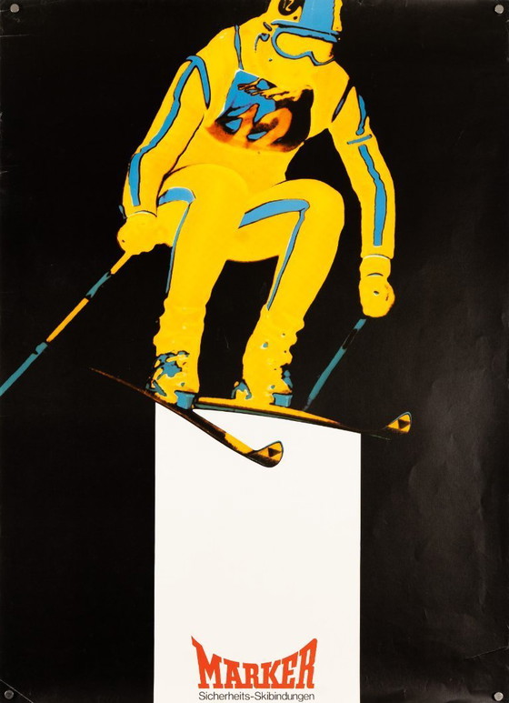 - A genuine piece of skiing history promoting the legendary Marker brand, pioneers of the releasable binding.