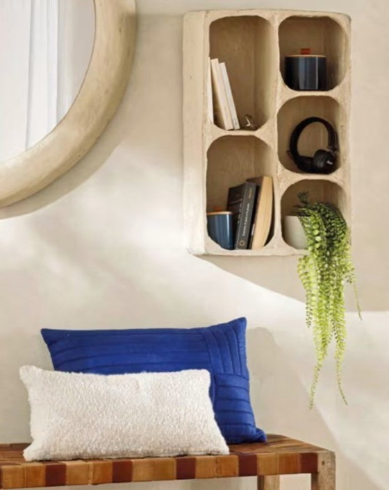 Presenta diverse nicchie dalle forme organiche, ideali per esporre oggetti decorativi in un ambiente boho o minimalista.