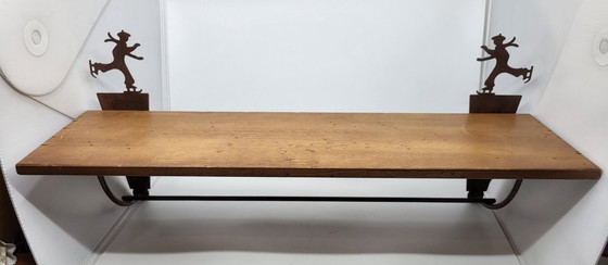 Aggiungi un tocco di fascino vintage alla tua casa con questa mensola in legno e metallo. Perfetta per l'arredamento di uno chalet di montagna, si distingue per i suoi dettagli in metallo traforato raffiguranti skater, donando un tocco giocoso e artistico al tuo spazio. Costruita per durare, questa mensola unisce il calore del legno alla robustezza del metallo, offrendo una soluzione di archiviazione elegante e funzionale. Ideale per esporre i tuoi oggetti preferiti o organizzare il tuo spazio con eleganza, si adatta perfettamente a un interno rustico o moderno. Immaginala nel tuo soggiorno o nella tua camera da letto, aggiungendo un tocco di autenticità e stile al tuo arredamento. Non aspettare oltre per dare vita al tuo spazio con questo pezzo unico!