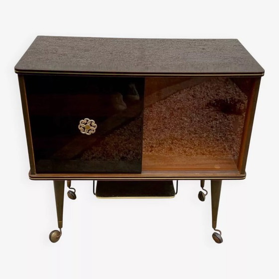 Scopri questo mobile bar vintage anni '60/'70, un pezzo elegante e funzionale che aggiungerà un tocco di fascino retrò alla tua casa. Realizzato con cura, questo mobile è dotato di ruote per una facile mobilità, permettendoti di spostarlo secondo necessità.