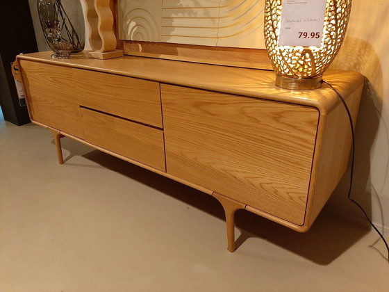**MODELLO DA SHOWROOM** Mobile basso Benson 2D+ 2L. Mobile basso della nostra esclusiva e trendy collezione Feelings Wonen. Il mobile basso Benson 2D+ 2L è rifinito in rovere/impiallacciato rovere e ha una finitura laccata naturale.