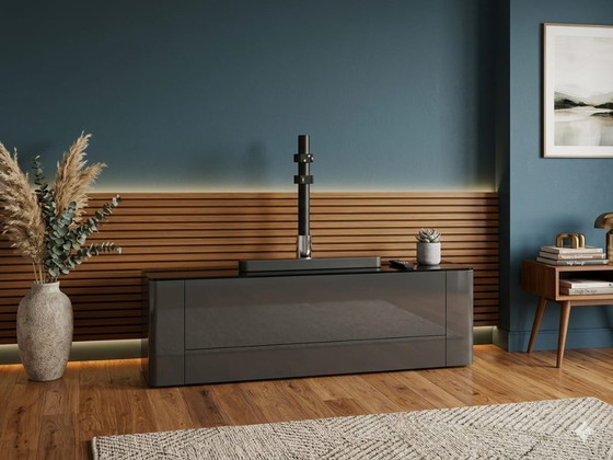 Il mobile porta TV Hülsta Gentis in antracite lucido unisce design moderno ed eleganza funzionale. Questo elegante complemento d'arredo non solo offre ampio spazio per i dispositivi multimediali, ma aggiunge anche un tocco di raffinatezza al vostro soggiorno.