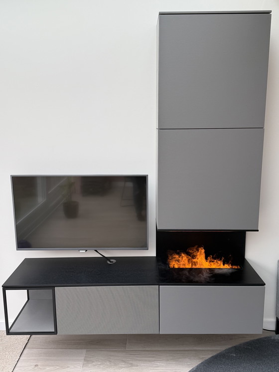 Scopri la massima armonia tra funzionalità e design con questo mobile TV Saunaco, completo di camino integrato.