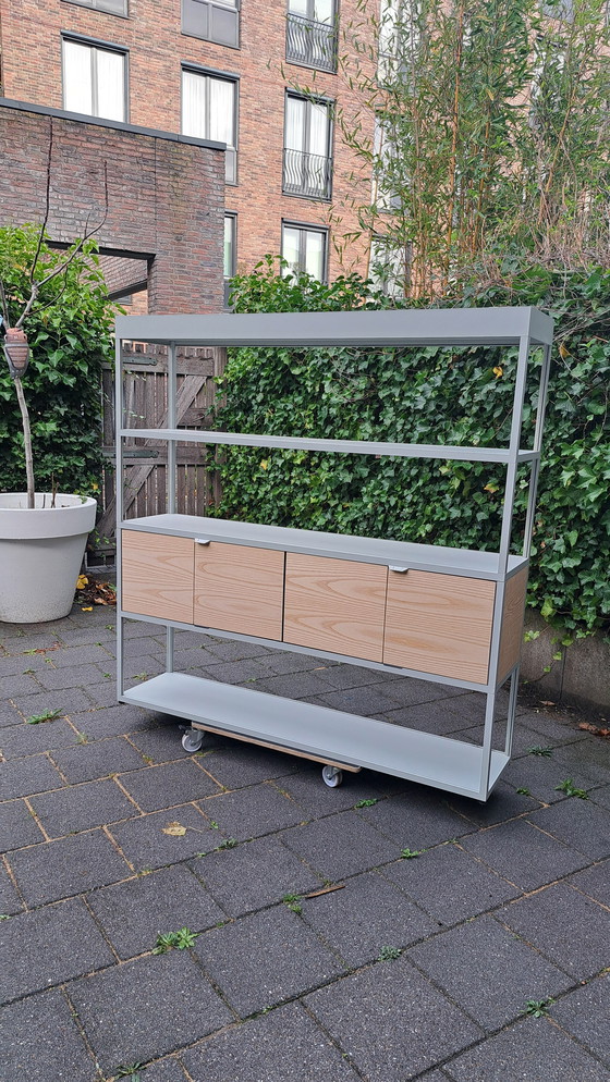 Bellissimo mobiletto Hay New Order in grigio chiaro. Il mobiletto misura 150 cm di larghezza x 150,3 cm di altezza x 34 cm di profondità. Presenta fianchi in legno e ante scorrevoli. Il prezzo di vendita al dettaglio è di 1725 €. Un'aggiunta elegante e funzionale a qualsiasi arredamento. Presenta alcuni segni di usura. Si preferisce il ritiro a Tilburg, ma è possibile anche la consegna.