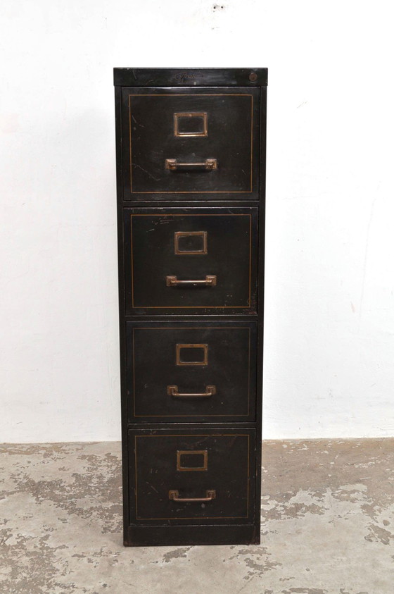 Un robusto classificatore verde con finiture in ottone del rinomato marchio Strafor di Strasburgo. Risalente agli anni '30. Il mobile presenta evidenti segni di usura, ma è proprio questo che lo rende così speciale! Dimensioni: L39 cm x P62 cm x A132 cm. Dimensioni interne dei cassetti: L33 cm x P59 cm x A26 cm (4 pezzi).