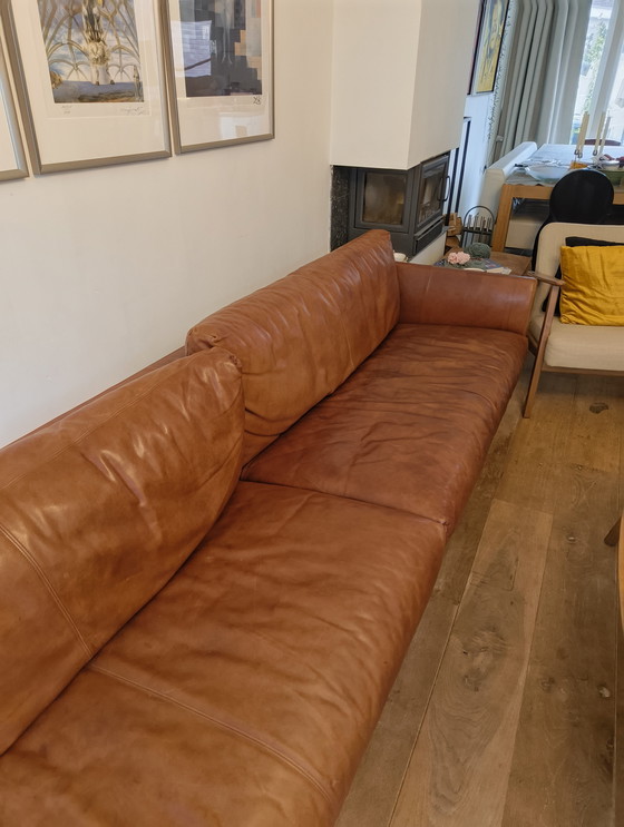 Divano di design Montis Axel. Con splendide gambe a slitta. Usato ma in buone condizioni. Questo intramontabile divano Axel a 4 posti di Montis, disegnato da Gijs Papavoine, è rivestito in calda pelle marrone e presenta gambe a slitta in acciaio inox. Grazie alla seduta profonda e ai cuscini morbidi, il divano offre il massimo comfort. La robusta struttura costituisce una solida base, mentre le sottili gambe a slitta creano un look moderno e raffinato. Il design elegante e la pelle di alta qualità creano un perfetto equilibrio tra stile e funzionalità, rendendo Axel perfetto per un'ampia varietà di interni.