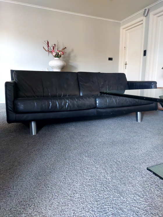 Divano Montis a 3 posti in pelle nera. Acquistato nel 1990. È un divano perfetto in termini di comfort e forma.