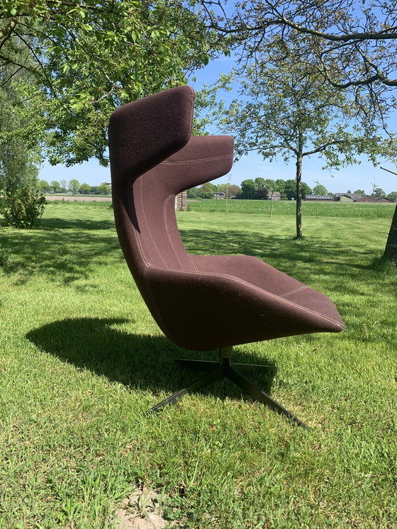 Questa elegante e moderna poltrona di Moroso, disegnata da Alfredo Häberli, ha un design unico e contemporaneo, con una comoda seduta in tessuto e una robusta base in metallo. Il colore marrone aggiunge un tocco di eleganza, rendendola un complemento perfetto per qualsiasi ambiente living moderno. La poltrona è in ottime condizioni, con solo lievi graffi sulla base, il che la rende esteticamente gradevole e funzionale. (Due pezzi disponibili.)