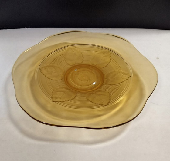 Scopri l'eleganza senza tempo di questa ciotola color ambra con un delicato motivo a foglie. Questa splendida ciotola emana una luce calda e invitante che si adatta perfettamente sia agli interni classici che a quelli moderni.