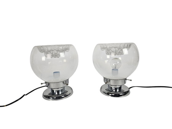 Murano - Mazegga - Carlo Nason - set di 2 lampade da tavolo - vetro - cromo - anni '60