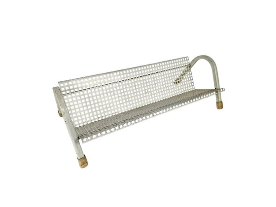 Lamiera d'acciaio forata laccata bianca con struttura in metallo. Originariamente pensata per riporre libri e riviste. Stile minimalista/Mid Century Modern.