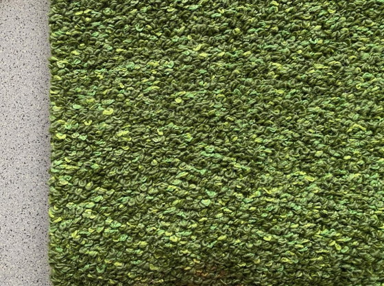 Il tappeto presenta una splendida texture bouclé con diverse tonalità di verde, che gli conferiscono un aspetto "vivace".