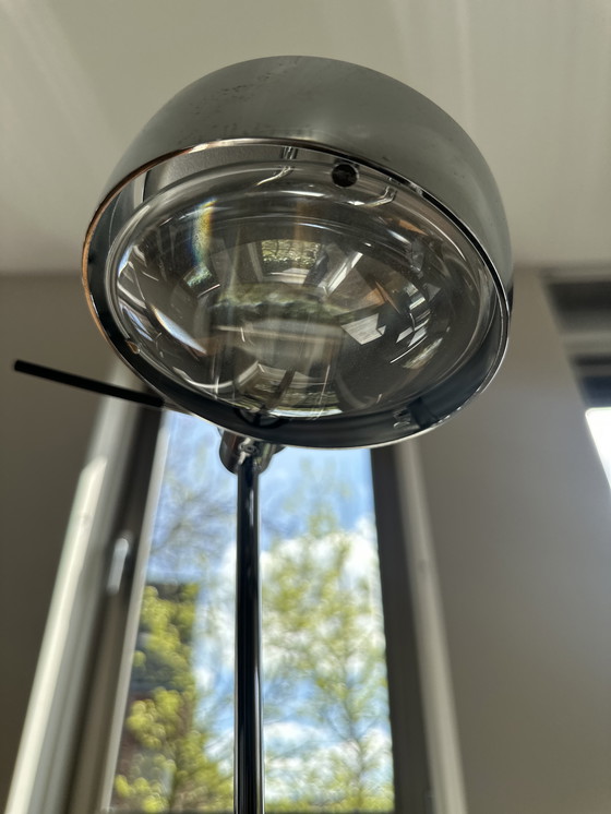 Lampada da terra Occhio Sento E Lettura 125 cm Designer: Axel Meise Materiale: Metallo e vetro Finitura: Cromo o argento opaco o cromo in combinazione con bianco/nero lucido o cromo opaco in combinazione con bianco/nero opaco, oro opaco, oro rosa o bronzo Dimensioni: Ø Testa riflettore 12,5 cm / Lunghezza asta 125 cm / Base Ø 27 cm Sorgente luminosa: Alogena Dimmerabile: Sistema dimmer integrato Caratteristiche speciali: Testa girevole a 360°, asta regolabile a 20°, base girevole Questa lampada viene consegnata con chip LED Ritiro ad Amsterdam