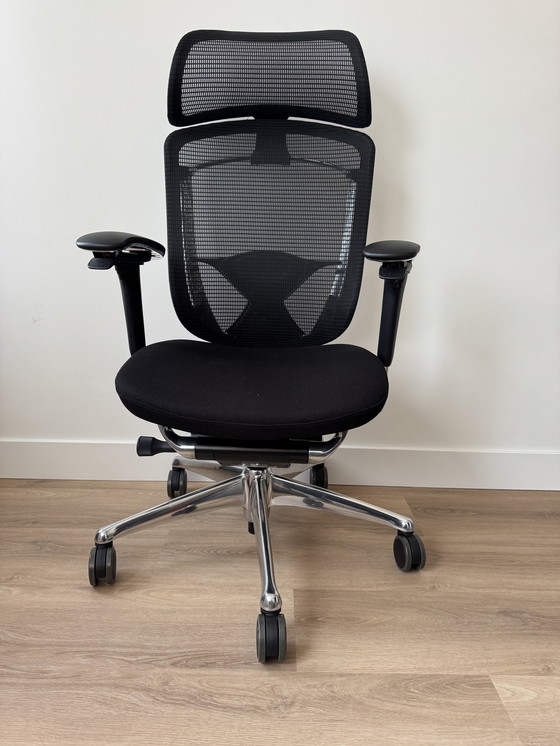 È dotata di un ampio poggiatesta e supporto lombare, che la rendono ideale per lunghe ore di lavoro.
