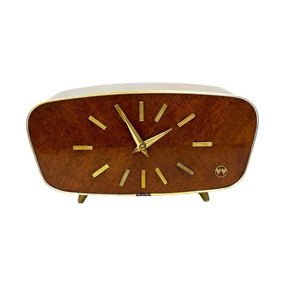Orologio da camino in noce impiallacciato di Weimar, anni '60, Germania Ovest, stile moderno di metà secolo