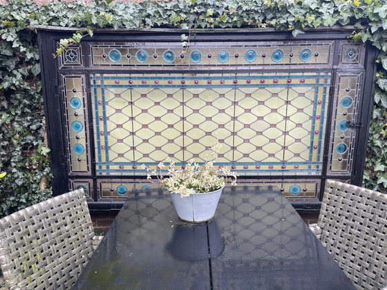 - Realizzata con meticolosa attenzione ai dettagli, questa vetrata mette in mostra l'eleganza e la raffinatezza del design di inizio XX secolo.
