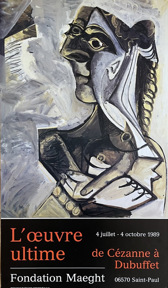 Possiedi un'elegante stampa di "Femme assise", creata da Pablo Picasso negli ultimi anni della sua leggendaria carriera. Stampata in Francia da Imp. Arte, Parigi, e protetta da copyright della Fondation Maeght (1989), quest'opera mette in mostra la maestria senza tempo di Picasso nel coniugare forma ed emozione. In buone condizioni, la stampa è imballata in modo sicuro in un robusto tubo di cartone, garantendo una consegna sicura. Pronta da incorniciare, è un'aggiunta perfetta a qualsiasi collezione d'arte.