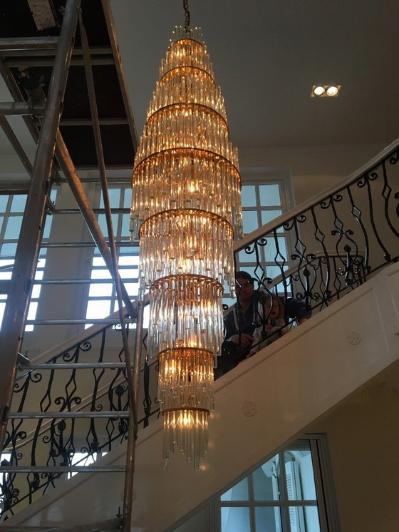 Si tratta di uno splendido lampadario Palwa degli anni Settanta, dal design unico e grandioso. Il lampadario è composto da più livelli di tubi di vetro, che creano un effetto abbagliante quando sono illuminati. La struttura in metallo dorato aggiunge un tocco di eleganza e lusso, rendendolo un perfetto centrotavola per qualsiasi spazio di grandi dimensioni. Il suo fascino vintage e l'intricata lavorazione artigianale non mancheranno di stupire.
