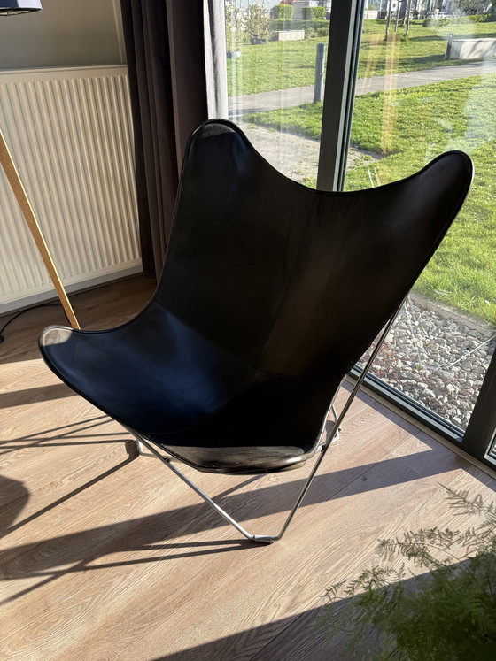 La poltrona Pampa Mariposa Butterfly è stata progettata da Antonio Bonet, Juan Kurchan e Jorge Ferrari per Cuero.
