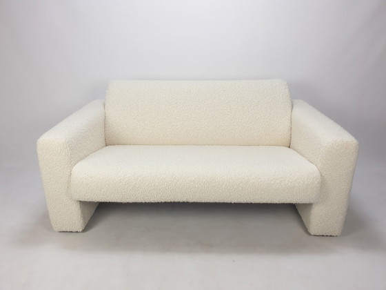 Panca a due posti Artifort modello 691, rivestita in morbido tessuto bouclé, anni '80.