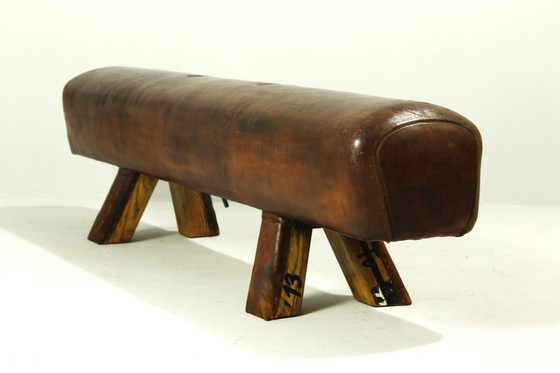 Panca da ginnastica vintage in pelle con maniglie, anni '40