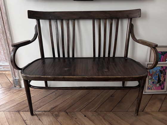 Elegante panca in legno curvato, fine XIX/inizio XX secolo, in stile Thonet o Baumann.