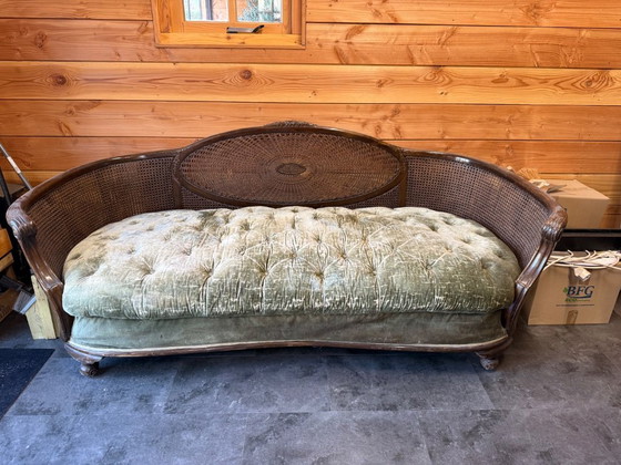 Scoprite il fascino delle epoche passate con questo splendido divano vintage, un capolavoro di artigianalità ed eleganza. La combinazione di rattan e legno conferisce a questo divano un look unico, classico e senza tempo. La seduta necessita di essere rivestita.