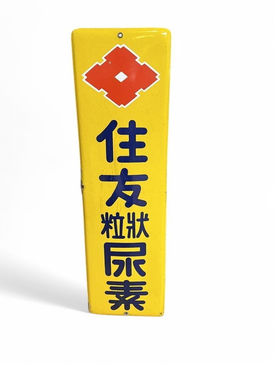 Questa è un'insegna pubblicitaria smaltata per "Sumitomo Granular Urea", utilizzata durante l'era Showa. La vivace combinazione di colori a base gialla e il logo rosso Sumitomo la rendono un must per gli amanti del retrò. "L'urea granulare" è un tipo di fertilizzante utilizzato in agricoltura. Contiene molto azoto, che favorisce la crescita delle colture. "Granulare" si riferisce alla sua forma, che lo rende facile da maneggiare e ha eccellenti proprietà di conservazione e distribuzione. Sumitomo Chemical era un importante produttore chimico giapponese che forniva prodotti di alta qualità nel settore dei fertilizzanti. Si ritiene che questa insegna fosse installata sulle pareti di cooperative agricole, uffici vendita e negozi di fertilizzanti in quell'epoca. ◆ Attrattiva del design: il contrasto del carattere blu industriale sullo sfondo giallo brillante. Il logo Sumitomo rosso e bianco (un logo in stile stemma di famiglia con diamanti sovrapposti) esalta l'effetto accattivante e sottolinea fortemente l'identità dell'azienda. L'esclusiva forma verticale con angoli arrotondati crea ritmo nella stanza e ha un eccellente effetto espositivo.