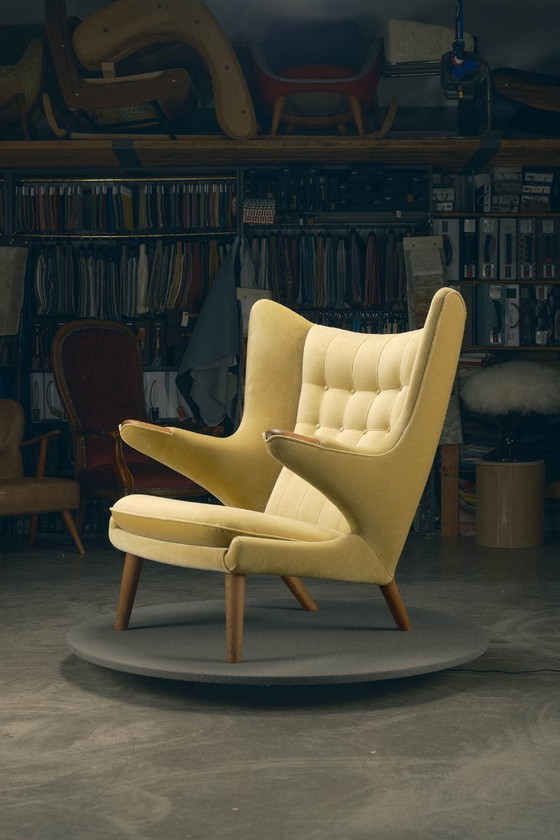 La poltrona Papa Bear (modello AP-19), disegnata da Hans J. Wegner e prodotta da AP Stolen in Danimarca, è una delle poltrone più ambite del modernismo del dopoguerra. Questo esemplare in particolare risale agli anni '50-'60.