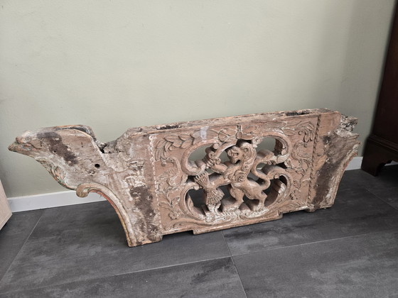 Questa splendida scultura in legno, ricavata dal retro di una carrozza, emana un fascino senza tempo che può impreziosire qualsiasi ambiente. L'intaglio dettagliato mostra un'elegante raffigurazione che riflette l'arte di un'epoca passata.
