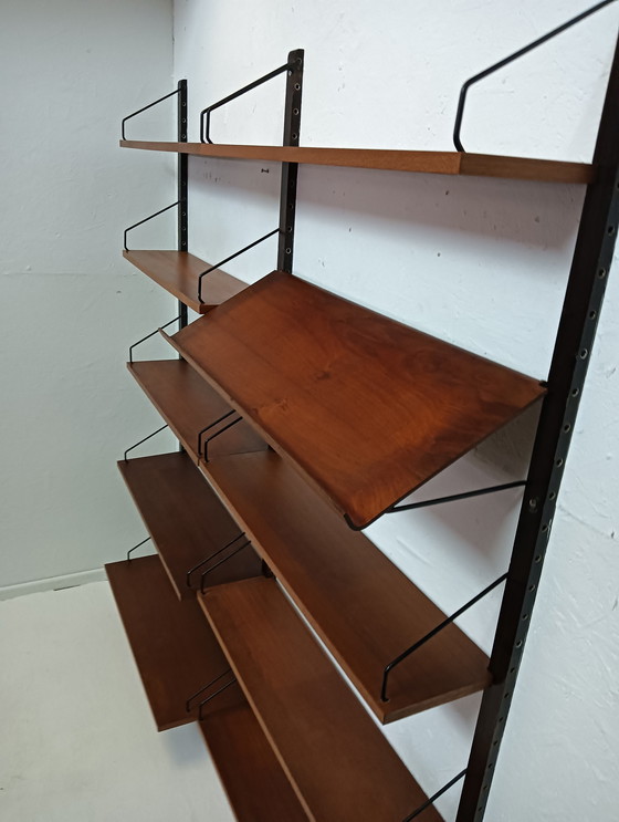 Portate un tocco di design moderno di metà secolo nei vostri interni con questo bellissimo pensile modulare Cadovius. Questo pezzo versatile combina la funzionalità con un'estetica senza tempo, perfetta per qualsiasi spazio che necessiti di uno spazio di archiviazione elegante. I ripiani in legno marrone caldo sono elegantemente sostenuti da un'elegante struttura in metallo nero, creando un look sofisticato.
