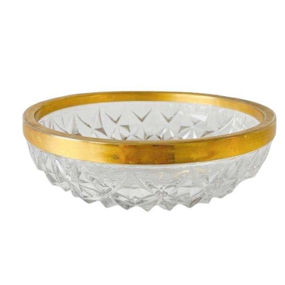 Piatto bomboniera in cristallo d'epoca Val Saint Lambert con bordo dorato