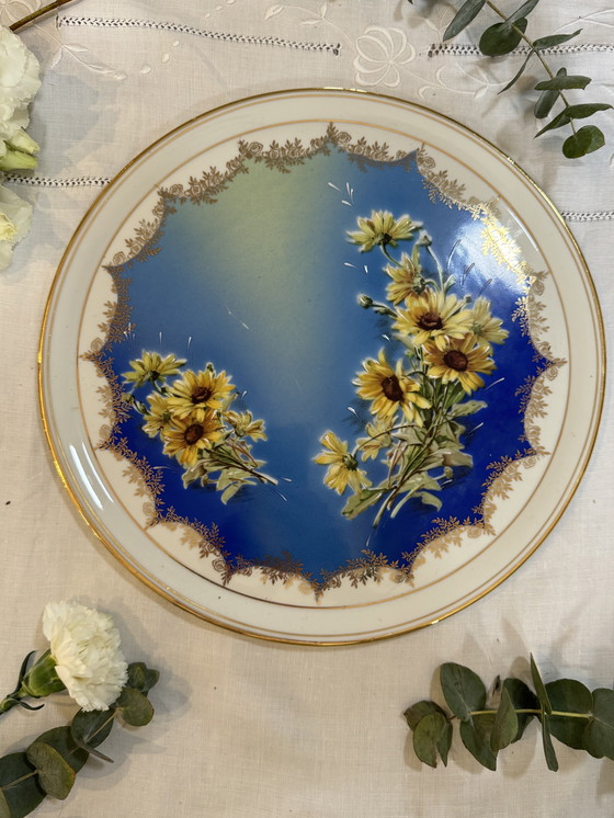 Grande piatto da dessert rotondo di Limoges con un raro motivo a girasole 🌻