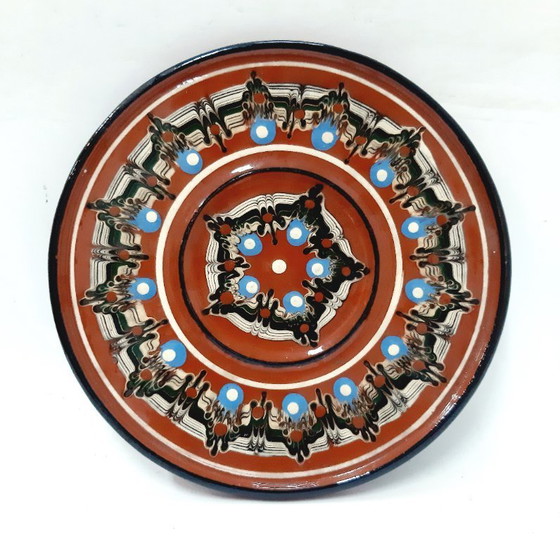 Questo squisito piatto decorativo vintage in argilla è una testimonianza della bellezza senza tempo della ceramica dipinta a mano. Con i suoi motivi intricati e le sue ricche tonalità, questo pezzo catturerà sicuramente l'occhio attento.