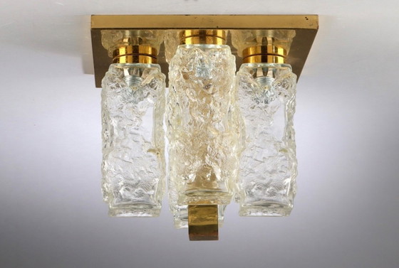 Si tratta di un apparecchio da soffitto Kalmar vintage degli anni '70, caratterizzato da una splendida combinazione di vetro e ottone. L'apparecchio presenta un design unico in vetro testurizzato che aggiunge un tocco di eleganza e raffinatezza a qualsiasi ambiente. La combinazione di colori oro e trasparente si adatta a diversi stili di interni, rendendolo una scelta versatile per la vostra casa. L'artigianato riflette la qualità e l'estetica del design degli anni '70, offrendo sia funzionalità che elementi decorativi.