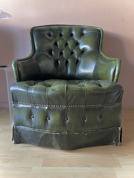 Questa elegante poltrona Chesterfield è realizzata in pelle verde scuro e ha un aspetto classico e sofisticato. Il suo design robusto e i bottoni profondi la rendono un'attrazione per qualsiasi ambiente. Perfetta per aggiungere un tocco di fascino vintage al vostro spazio abitativo, questa poltrona unisce il comfort a uno stile senza tempo. Ideale per chi ama l'artigianato e l'estetica tradizionale.