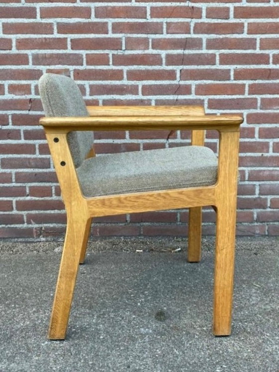 Questa poltrona danese, disegnata da Erik Kirkegaard per Høng Stolefabrik nel 1985, incarna l'eleganza del design moderno di metà secolo. Realizzata con una robusta struttura in legno e rivestita in un delicato tessuto beige, offre comfort e stile. Il design ergonomico della sedia e la qualità dei materiali la rendono un pezzo senza tempo, perfetto per qualsiasi spazio abitativo.
