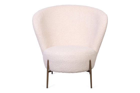 Poltrona Orbit + pouf di Dan Form / poltrona RPES color colomba / gambe in ottone anticato / dimensioni 77x75x80 cm e 57x56x45 cm (pouf) Le immagini mostrate sono la rappresentazione reale del prodotto.