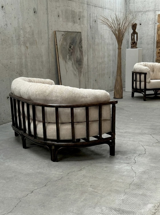 CondizioneMolto buonoColoriMarrone, CremaMaterialeBambù, VellutoNumero di articoli2Altezza71 cmLarghezza84 cmProfondità80 cmAltezza del sedile39 cm