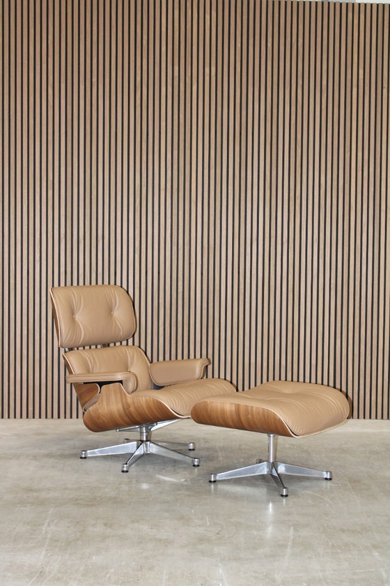 Poltrona e poggiapiedi Vitra Eames Lounge Chair + Ottoman - Pelle Premium F Camel