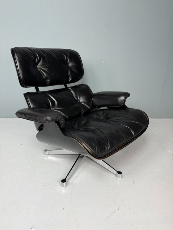 Rara ed elegante edizione completamente nera dell'iconica Eames Lounge Chair, prodotta da Herman Miller.