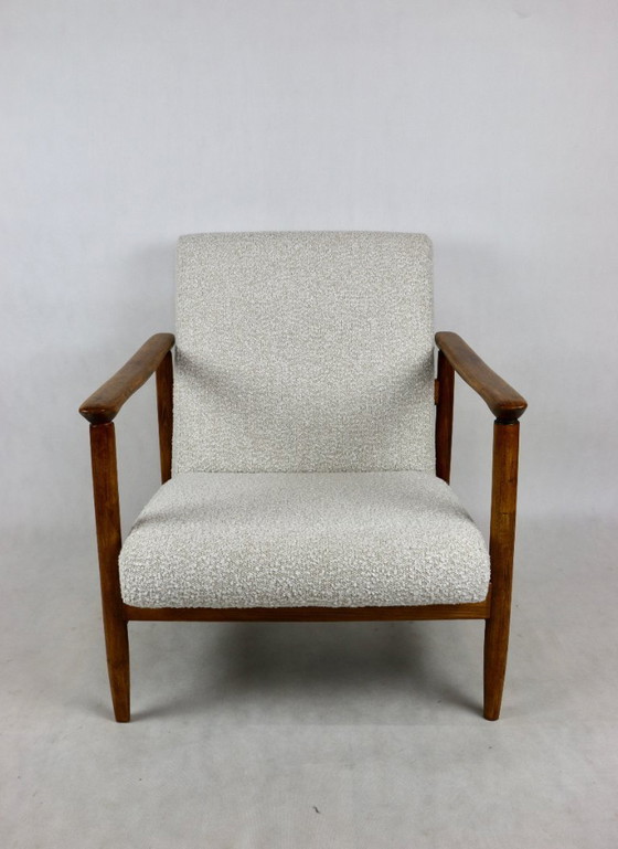 Poltrona GFM-142, design di Edmund Homa degli anni '70, bouclè bianco avorio - 2 pezzi disponibili