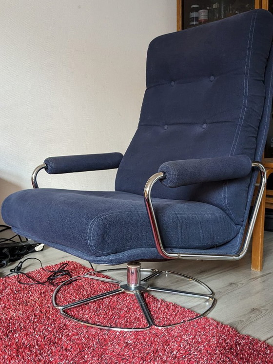 Poltrona attribuita a Jan des Bouvrie per Gelderland, Paesi Bassi, anni '70. Modello 400, anni '70, poltrona girevole con base cromata e rivestimento in pelle marrone scuro, disegnata dal designer olandese Jan Antoon des Bouvrie (1942–2020). Progettò la poltrona per l'azienda Gelderland, fondata nel 1936. Il numero 840 è riportato sotto la base. Le dimensioni sono: altezza 95 cm, larghezza 72 cm, profondità 80 cm. L'altezza della seduta è di 43 cm e il peso è di 9 kg. La poltrona è in buone condizioni vintage. Questo pezzo è attribuito al designer/produttore sopra menzionato.
