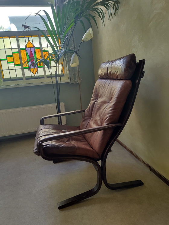 Immagina di tornare a casa dopo una lunga giornata e di sprofondare in questa poltrona Siesta di Ingmar Relling. Il ricco rivestimento in pelle marrone e l'elegante struttura in legno emanano un fascino vintage che si adatta perfettamente a qualsiasi soggiorno elegante.