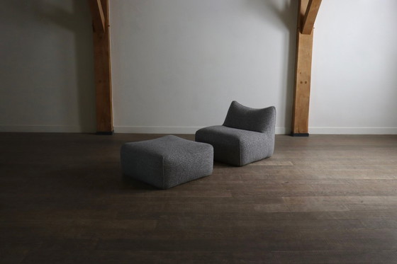 Splendida poltrona "Le Bambole" con pouf in bouclé grigio, disegnata da Mario Bellini e prodotta da B&B Italia negli anni '70.
