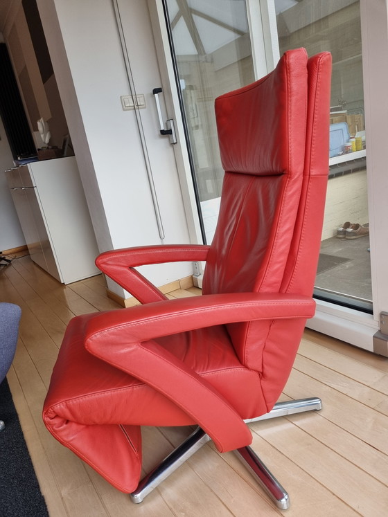 Concedetevi il massimo del comfort con questa moderna poltrona reclinabile, un complemento perfetto per qualsiasi soggiorno contemporaneo. Il rivestimento in pelle rossa brillante emana un'aura di lusso, mentre la robusta base in metallo garantisce stabilità e durata nel tempo.